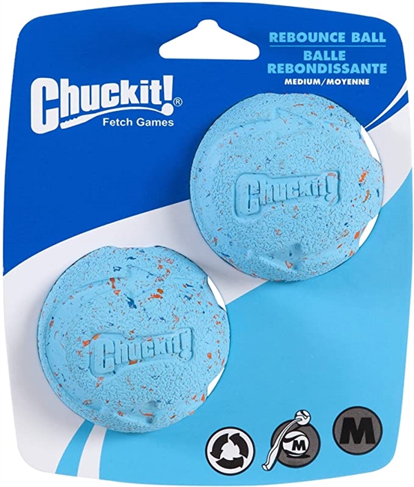 Chuckit Med Rebounce Ball er lavet af genbrugsgummi, så den hopper perfekt.