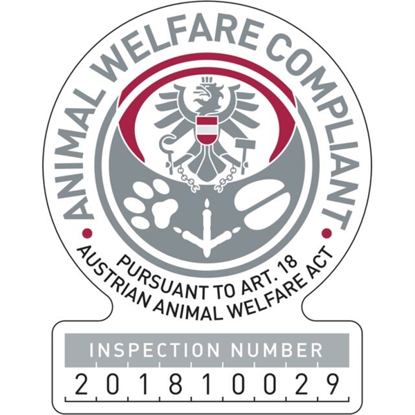Tildelt med dyrevelfærdsudmærkelse: legetøjet er i overensstemmelse med den østrigske dyrevelfærdslov, garanterer overholdelse af dyrevelfærdsbestemmelser
