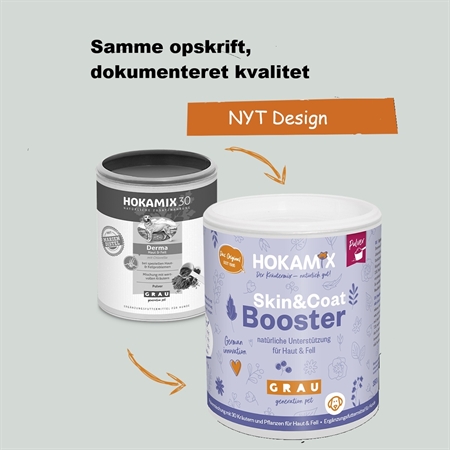Hokamix Skin & Coat Booster er et naturligt kosttilskud til hunde med hudproblemer. Produktet er tidligere kendt som HOKAMIX30 Derma Pulver og bygger på den velkendte urteblanding HOKAMIX30.