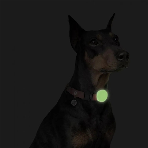 Den selvlysende GLOW-effekt gør hunden lettere at se i mørke og skumring, mens AirTag’en hjælper dig med at holde styr på din hund – både i hverdagen og på eventyr.