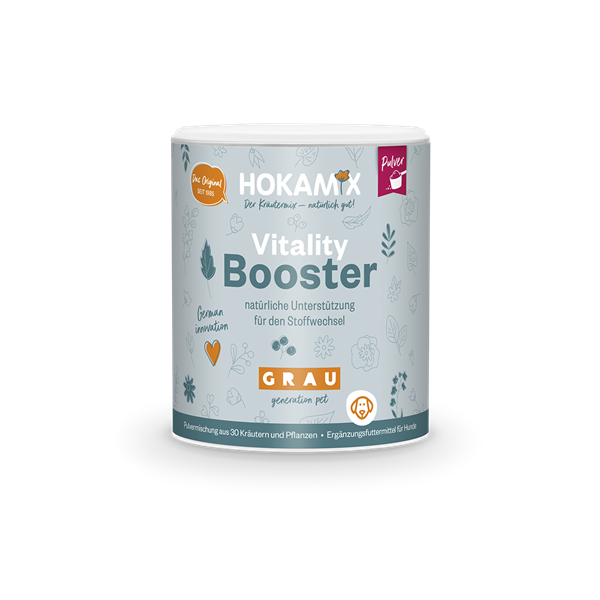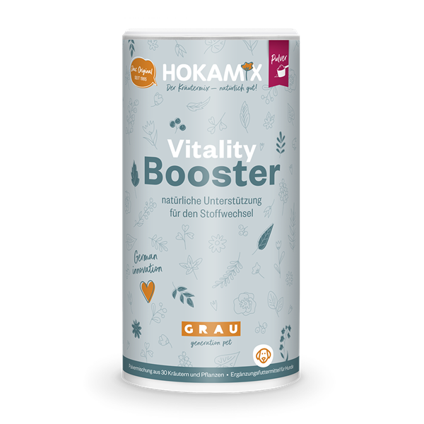 Hokamix Vitality Booster er et naturligt kosttilskud til hund, tidligere kendt som HOKAMIX30 Classic. Den velkendte urteblanding understøtter hundens generelle sundhed, vitalitet og stofskifte.