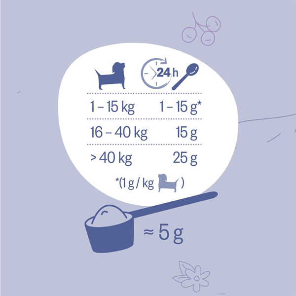 Start gerne med en mindre mængde og øg gradvist. Til følsomme hunde kan pulveret også blandes i yoghurt, kvark eller kærnemælk.