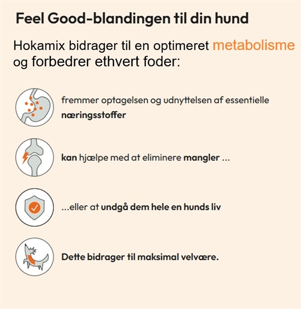 Hokamix Vitality Booster er udviklet til at understøtte hundens generelle sundhed gennem en naturlig urteblanding uden tilsætningsstoffer.