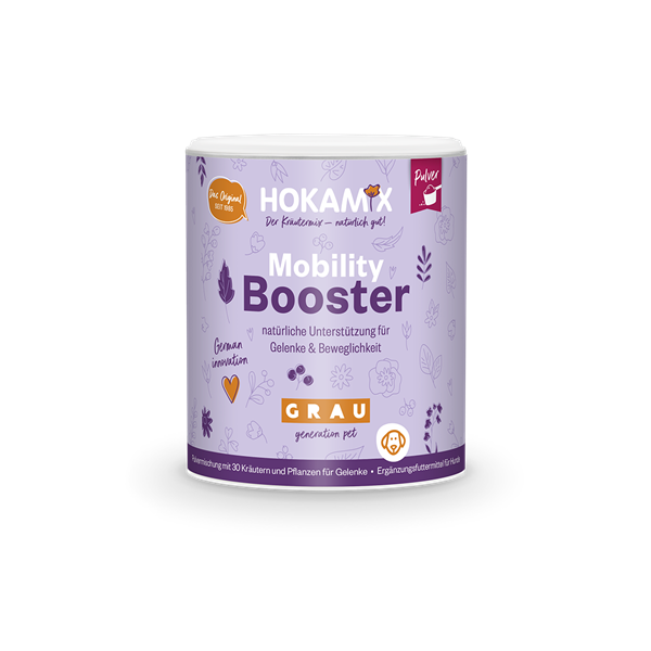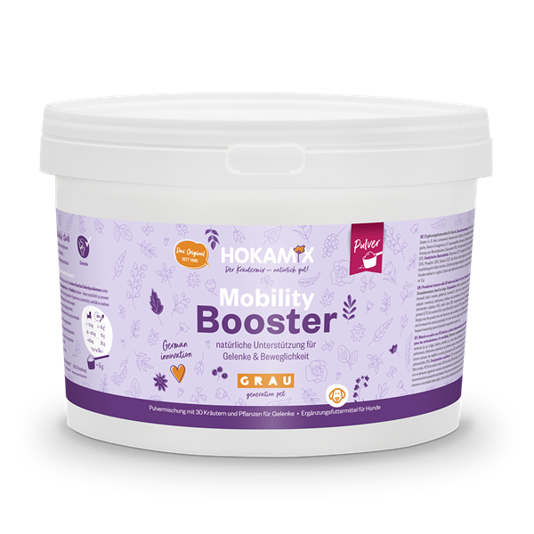 Hokamix30 Mobility er et naturligt fodertilskud, der understøtter sunde led, sener og muskler hos hunde i alle aldre. Produktet bygger på den klassiske Hokamix30-urteblanding, men er tilsat grønlæbet musling, gelatinehydrolysat og glucosamin, som giver ekstra støtte til bevægeapparatet.