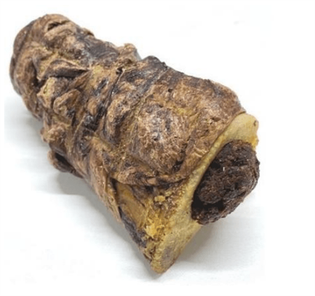 Naturligt tyggeben af okseknogle fyldt med lækker kallun og svøbt i okselunger – en uimodståelig kombination af smag, tyggetid og næring.