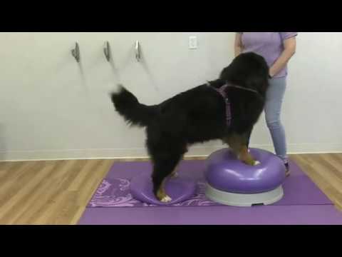 Pust disken op med almindelig luftpumpe. Lad hunden balancere, steppe og skifte position for at styrke core, balance og koordinering.