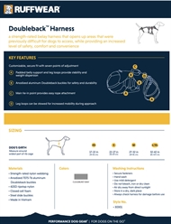 En styrke vurderet sikrings sele, der åbner nye områder for hunde at udforske med deres ejer, som ellers ville være svære at få adgang til. Doubleback-selen er vurderet til 2.000 lbf eller 8,9 kN, og den er designet til at være komfortabel, samtidig med at den hjælper med at løfte og sænke hunde i udsatte områder, hvilket betyder, at din hund kan følge med, når stigningen bliver stejl.