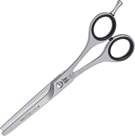 Professionelle Witte Rose Line 82051 39 tænder udtyndingssaks er fremstillet af satin-finish rustfrit stål, hvilket giver en glat poleret overflade. Værktøjet måler 13,34 cm i længden.