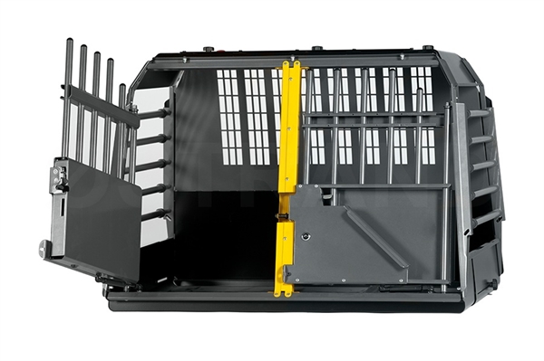 Variocage findes i modeller til 1 eller 2 hunde og i størrelser til både mindre og større hunde. I dobbeltburet kan midtersektionen fjernes.